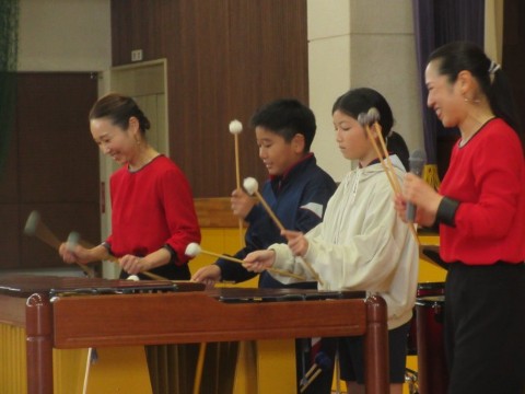 3限目はPTA教養部のみなさんにご尽力いただき、マリンバコンサートを開催しました。プロの方の生の演奏を聴くことは貴重な経験です。子どもたちも演奏に聴き入っていました。また、前に出て一緒に演奏したいと多くの子どもが手を上げるなど、素直に反応できることが本郷小の子どもの良いところだと思います。とても心地よい時間でした。教養部のみなさん、本当にありがとうございました。