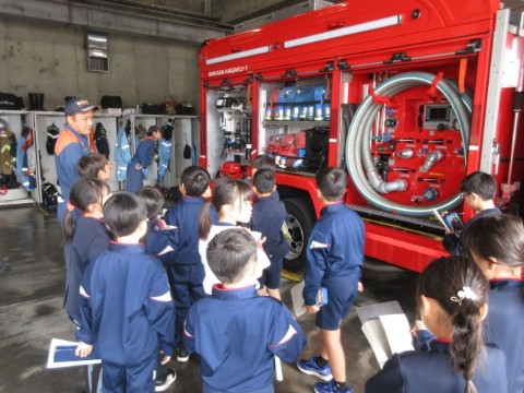 3年 消防署見学 公開日 2025/11/13 更新日 2025/11/13 本小日記 12日(水)、3年生が小浜市の若狭消防本部・若狭消防署に見学に行きました。司令室や消防車、救急車などを見せていただき、説明を聞きました。子どもたちは実際に働いている方からのお話や、実物の車両を見ることで、一層消防署の仕事に対する理解が深まったように思います。大きくなったら消防士になりたいと思った子どももいたのではないでしょうか。