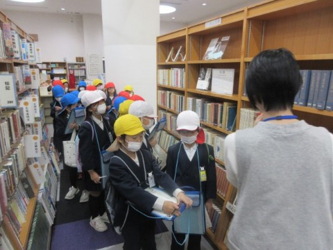 今日、2年生が生活科の「町たんけん」の単元の学習で、道の駅うみんぴあと大飯図書館に出かけました。町たんけんは2回目です。