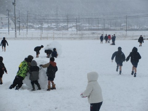 今日の昼休み 公開日 2026/01/22 更新日 2026/01/22 本小日記 昨日からの雪がグラウンドに積もりました。昼休みには多くの子どもたちがグラウンドに出て、雪遊びを楽しんでいました。雪合戦、雪玉づくり、積もった雪の中をただ走る、など、寒さなど問題にはならない子どものパワーを感じます。今日の雪はふわふわで気持ちいいみたいです。グラウンドには直径1メートルを超える雪玉が数個、少し小さい雪玉もたくさん転がっています。明日も元気に遊びましょう。