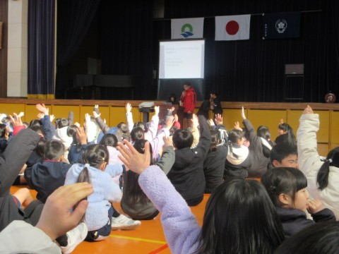 今日、執行部の企画運営で児童集会が行われました。この企画は、最初クリスマス集会として企画されたものでしたが、インフルエンザの拡がりに伴って2回にわたり中止になったものでした。今日、やっと実施することが出来ました。