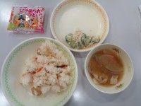 3月3日の給食は、ひなまつり献立でした。ちらし寿司をお代わりして、ひなあられをお...