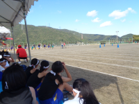 競技を終えてからも他の児童の応援をテントで頑張っていました。