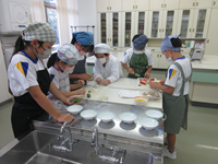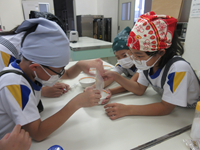 5・6年生が総合の時間に植えた自然薯にむかごができました。たくさんのむかごが採れたので、調理をして食べることになりました。子ども達は、いろいろなむかご料理を調べて、自分達にできそうなものを選んだ結果、むかごの素揚げ(いろいろな味で楽しむ)とむかごのピザ(餃子の皮に具材をトッピングする)に決まりました。