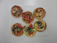 まずは、むかごをきれいに洗って、水気をふき取った後、油で素揚げにしました。その後、素揚げしたむかごに絡める調味料を作る班とピザにのせる具材を切る班に分かれて、それぞれに工夫しながら調理していきました。ピザは一人2枚の皮にトッピングをして、焼き上がるまでの間に、素揚げのいろいろな味を楽しみました。子ども達が考えた調味料は、「塩味」「のり塩味」「コンソメ味」「カレー味」「きなこ味」の5種類でした。どの味がおいしかったか、お家でも聞いてみてください。そうしている間に、やっと焼き上がったピザをほおばりながら、子ども達は満面の笑顔でした。