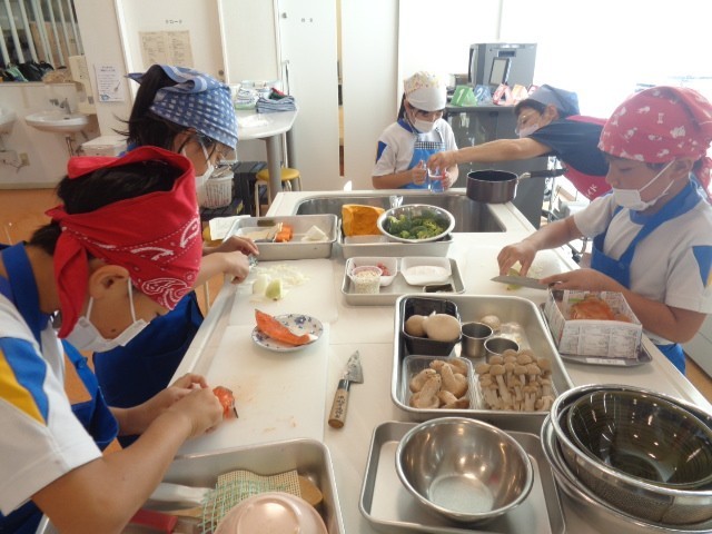 3~5年生は、先週の校外学習で小浜市の御食国若狭おばま食文化館へ行き、地元の食材を使った調理体験をしました。児童たちは、調理体験の指導をしてくださるグループマーメードの方々のお話を聞きながら、地産地消の大切さや食材を無駄をなく使う工夫について学びました。調理を楽しみながら、地球に優しい行動とは何かを自分たちで考える貴重な時間となりました。昨日のブログ内の1~2年生の振り返りと同様に、本日は3~5年生の振り返りを紹介します。