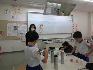 出汁について学びました! 公開日 2025/11/13 更新日 2025/11/13 佐分利小学校の一日 5年生が栄養教諭による出汁についての授業を受けました。塩味や酸味などを舌で感じる体験をしたり、出汁の良さをみんなで考えたりしました。人が健康に過ごすために必要な食について良い学びとなりました。