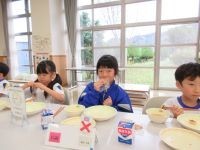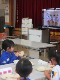 給食時には、名田庄商会さんのクッキー作成の動画を見て、理解を深めました。じねんじょといえば、おおい町の特産品の一つです。