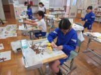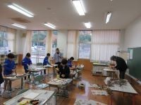 3年生のふるさと学習に、「NPO法人森んこ」の萩原さんに来ていただき、落ち葉や木の実を使って工作をしました。