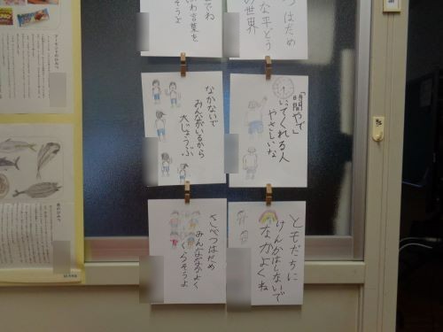 全校児童が人権標語の作成に取り組み、先週から各教室に掲示しています。