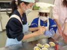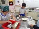 自分たちで栽培したさつまいもを使って、スイートポテト作りをしました。栄養教諭と一緒だったので、さつまいもチップスも揚げてもらいました。切る、つぶす、混ぜる、形を整えるといった作業を協力しながら作りました。校長先生や教頭先生にも出来立てを食べてもらって、「おいしい」と言ってもらえる喜びを十分味わうことができました。もちろ、試食の後には、片付けをしました。身だしなみから片付けまで、しっかりと活動することができました。