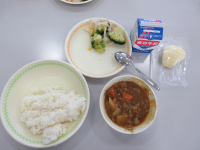 今日の給食は、おおい町産の若狭牛が使われたカレーでした。