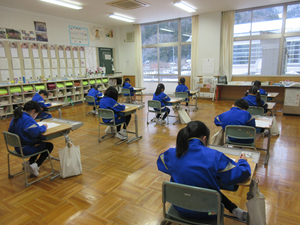 1日目の今日は、各学年国語と算数の検査を行いました。1年生は、初めての検査で問題数も多いため、少し緊張していましたが、みんな真剣に取り組んでいました。
