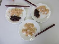 白玉団子を作り、自分の好きなトッピングを選んで美味しくいただきました。