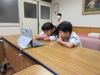 9月24日()、美ら海水族館の「うみのかくれんぼ オンラインプログラム」に参加しました。美ら海水族館のスタッフの方から、日々のお仕事の内容や、美ら海水族館にいる生き物のこと、そして、国語で学習している「うみのかくれんぼ」に即したかくれんぼクイズなどをお聞きしました。