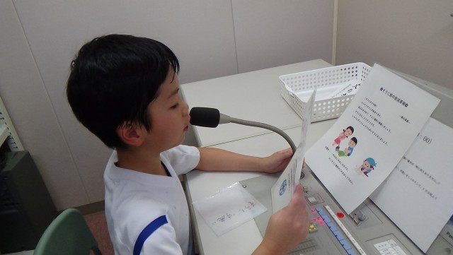 今日は,4~6年生がいないなか、3年生がリーダーとして頑張ってくれています。遊びたい気持ち、恥ずかしさもある中で、今日は日直担当の3年生が放送当番を務めてくれました。朝の放送では、初めて放送室に入る中、緊張しながらもマイクに向かって一言一言を丁寧に伝えていました。