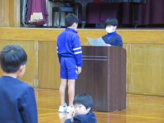 今日(18日)の業間には、表彰式と後期児童会の取り組み報告が行われました。