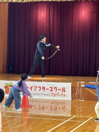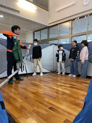 今日(22日)は、大島公民館で防災学習が行われました。参加した児童は、配付された資料を使って地域の危険箇所や避難方法を確認していました。また、要支援者テントや簡易ベッドの体験を通して、避難所での過ごし方について理解を深めていました。後半の縄跳び教室では、ギネス記録保持者のひじき先生の話をよく聞きながら技に挑戦し、楽しんで縄跳びをしていました。