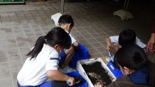 今日(26日)、1年生は生活科の時間にチューリップの鉢植えをしました。