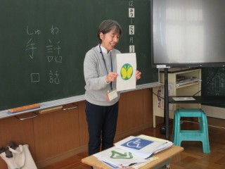 「手話」という言葉を初めて知った児童もおり、手話の成り立ちや役割について興味深くお話を聞いていました。