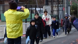 冷たい風が吹く寒い朝でしたが、登校してくる子どもたちは、元気な声で「おはようございます」とあいさつを交わしていました。