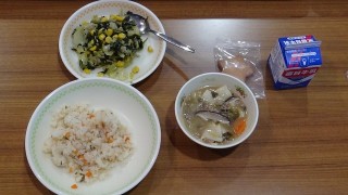 給食週間3日目の今日(28日)の給食メニューには,昨年度の5・6年生が漬けたへしこを使った「へしこチャーハン」が登場しました。