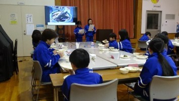 また,健康委員会からは,「へしこ」にちなんだクイズも出題され,給食の時間は学びと楽しさがいっぱいのひと時となりました。