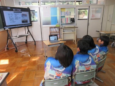 1月31日(金)に、オンラインで滋賀県甲賀市の大野小学校の4年生と交流会を行いました。大野小、本校ともに自己紹介や学校紹介を行い、お互いに詳しく知りたいことなどを尋ね合ったりしました。画面を通してですが遠くの小学校の4年生と交流でき、大変有意義な時間を過ごすことができました。大野小学校の4年生の皆さんは、大島小学校の教室から見える海の景色と玄関にある水槽と魚を見て、大変喜んでくれていました。2月14日(金)には、2回目の交流会を行い、お互いに1年間学習してきたことなどを発表し合う予定です。大野小学校の4年生とさらに交流を深めていきたいと思います。