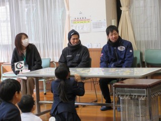 その後は、一緒にクイズや食育カルタや豆つかみ大会をして楽しい時間を過ごしました。