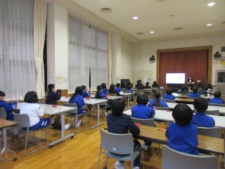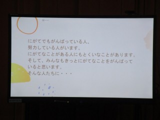昨日(17日)の全校集会は,校内特別支援教育コーディネーターの先生による理解教育がありました。