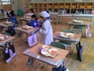 今日から1年生も給食が始まりました。配膳の仕方や食事のマナーについての説明をしっかりと聞き、落ち着いて準備を進めることができました。今日の献立は、「チキンライス、牛乳、春キャベツのマカロニサラダ、大根...