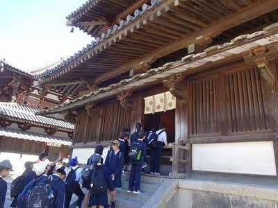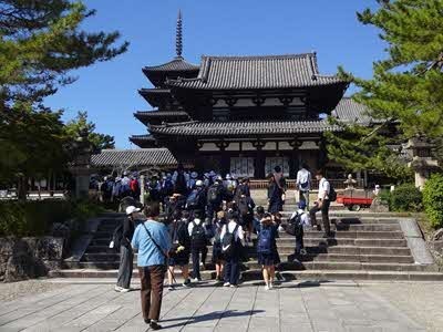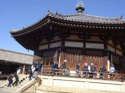 昼食を済ませ、午後最初の研修地は法隆寺でした。