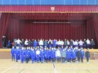 学習発表会で披露する、名田庄小学校創立50年記念ソング「名田庄のたからもの」を、全校児童で練習しました。壇上では、1、2年生が歌に合わせて踊りも練習しました。3年生から6年生は、一生懸命に歌を歌いました。寒い中、初めての全体練習でしたが、全校の歌声がまとまって名田庄のよさが伝わってきました。