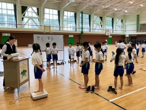 体育館や各教室を使って、身長・体重の測定と視力・聴力の検査を行いました。6年生は1年生の案内やお手伝いをし、他の学年もスムーズに検査ができました。