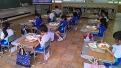 今日から1年生も給食が始まりました。配膳の仕方や食事のマナーについての説明をしっかりと聞き、落ち着いて準備を進めることができました。