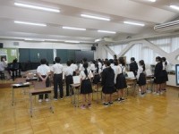 4・5年生は音楽会に向けて合同練習に取り組んでいます。 今日は、全体で発声練...