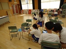 10グループに分かれ、それぞれのアイディアをより良く伝えようと工夫している真っ最中です。ポスターの原画を制作する、タブレットで資料を作る、地域の講師の方にアドバイスをうかがう、などの様々な役割を決めて、主体的に活動しています。