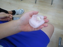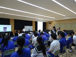 命の尊さや大切さ、胎児の成長の様子、望まない妊娠などの内容について、初めて耳にすることが多かったようで、生徒たちは神妙な面持ちで聞き入っていました。妊娠2ヶ月の胎児の模型を手にした際には、その小ささに驚きの表情を見せていました。