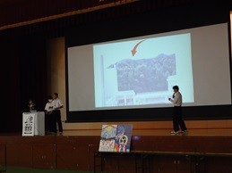 本日、1年生ふるさと学習の一環として「おぉ~いぃ~総選挙」を行いました。各グループで考え抜いた地域活性化案を順にプレゼンしていきました。生徒たちは身振り手振りを交えながら、表情豊かに一生懸命に自分たちのアイディアを説明しました。参加した本校2・3年生、校下小学校6年生、高浜小5年生からの質問にも、その場で回答を考え丁寧に対応していました。