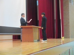先週23日(木)、後期生徒会任命式を行いました。執行部、委員長、学級委員を呼名し、代表の生徒会長に任命証を渡しました。呼名された生徒たちの返事が素晴らしく、その姿から本気とやる気が伝わってきました。
