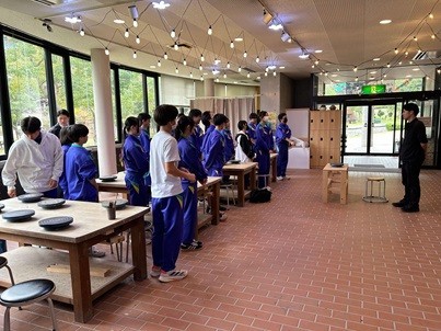 昨日、3年3組の生徒たちが「きのこの森陶芸館」にうかがい、陶芸体験学習を行いました。職員の方から注意点を教わった後、すぐに製作に取りかかりました。