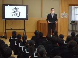 本日、2学期終業式を行いました。校長講話では、校長自身が選んだ今年の漢字「高」にちなんだ言葉を用いた話がありました。