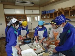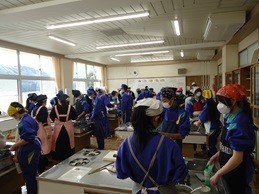 本日、2年1組で伝承料理教室を行いました。おおい町の食いきいき隊の方々の御指導のもと、「焼き鯖の押し寿司」と「でっちようかん」に挑戦しました。生徒たちはとても意欲的で、仲間と協力しながら手際よく進めていました。食いきいき隊の皆様ありがとうございました。なお、2年2組の伝承料理教室は明後日1/23に実施します。