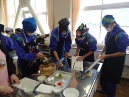 今日は2年2組で伝承料理教室を行いました。おおい町食のいきいき隊の皆様の御指導のもと、美味しく作ることができました。大雪がおさまり青空がのぞく中、生徒たちも明るく穏やかな表情で取り組んでいました。