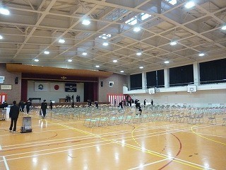 新任式の後、新2・3年生が入学式の会場準備をしました。