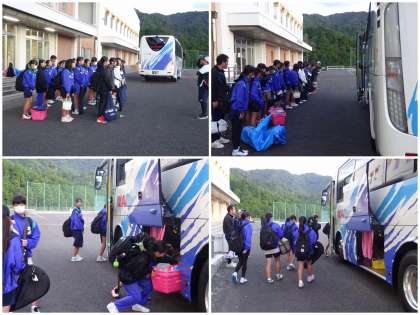 バドミントン競技、ソフトテニス競技、サッカー競技に出場する生徒たちが、それぞれの会場に向かって朝早く出発しました。