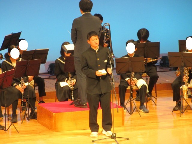 まずは、おおい町文化協会主催「令和7年度おおいなるうた」です。本校は短歌の部に全学年が取り組み、作品応募しました。その結果、2名が優秀賞、4名が入選に選ばれました。その表彰式が去る2日(日)、町民文化祭(おおい町総合町民センター)にて行われました。当日は、優秀賞を受賞した本校2年生が出席し、表彰を受けた後に受賞作品を朗読。会場の皆様より大きな拍手が送られました。