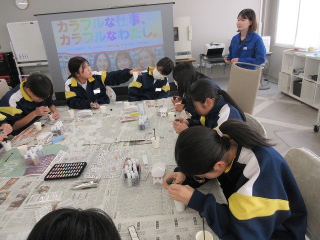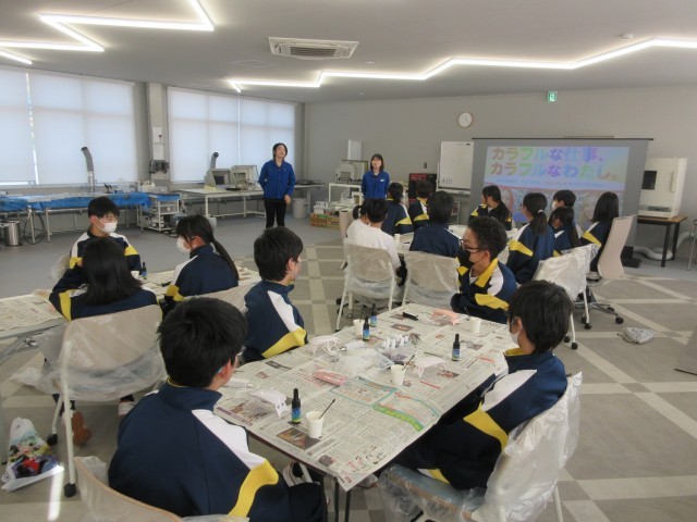 次に訪問したのは、メッキや塗装などの表面処理加工を担う会社「株式会社ワカヤマ」さん。色や風合いで製品に新たな価値を生み出す装飾加工のプロフェッショナルだそうです。今回は施設内にある「デザインセンター」にて「ものづくり体験」をさせていただきました。実際にものづくりの現場に携わる方々から指導してもらいながらの「ものづくり体験」…ものづくりの楽しさ・大変さ・繊細さなどなど、たくさんのことを学び得ることができたようです。福井県には、世界や国内でのシェアが上位の製品や、オンリーワンの技術を有する企業が数多く存在しますが、今回訪問した株式会社ワカヤマさんもその一つ。福井が誇る高度なものづくり技術…これも福井県民として誇れるものの一つと言えるでしょう。