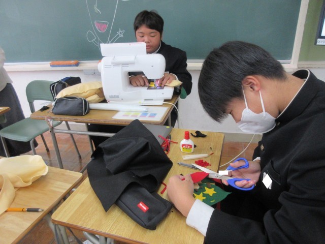 まずは、「名田庄万博グループ」。考案した自然薯マスコットキャラクター「じ~ちゃん」を名田庄地区からさらに広域へと広めるための準備を進めています。今日は、プラバンやフェルト・ぬいぐるみなど、様々な材料を使ったマスコットづくりに取り組みました。美術科での絵画学習、家庭科での裁縫学習、技術での材料加工学習といった教科の学びを発揮して製作活動に取り組む本グループメンバー。そのやる気と意欲に満ちた活動ぶりに感心するとともに、創造力の高さにも驚かされます。