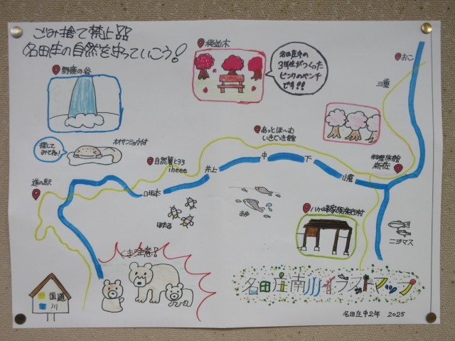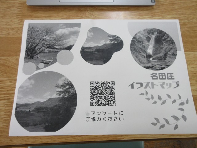 次に、「自然グループ」。南川を中心とした地域の自然環境を守るべく、名田庄地区自然マップを作成した本グループは、活動協力者を幅広く募るための取組を進めています。まず第1弾として校内掲示…全校生徒に環境保全の呼びかけを行いました。そして第2弾…お隣の名田庄小学校に出向いて名田庄地区自然マップの掲示と活動への協力を依頼しました。そして第3弾には、「道の駅若狭おばま」での活動アピールと協力依頼を計画しています。今日はその準備を行いました。新たにQRコード(アンケート)付きのチラシを作成していましたが、その具体的内容は当日までのお楽しみということです。